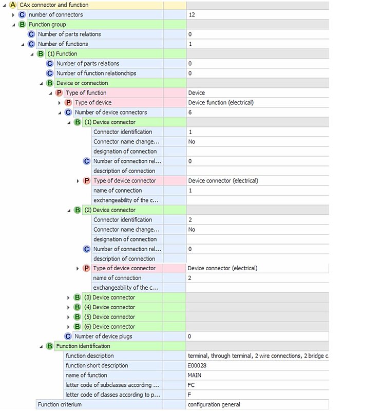 3 | M | Function designation | Currently eClass Symbol ID function identification or, if not possible, short text for supporting identification of the function. Is shown more frequently in CAE. (Ex: DI for identification of a digital input channel) | Currently ID as reference to the symbol or as a mapping reference |