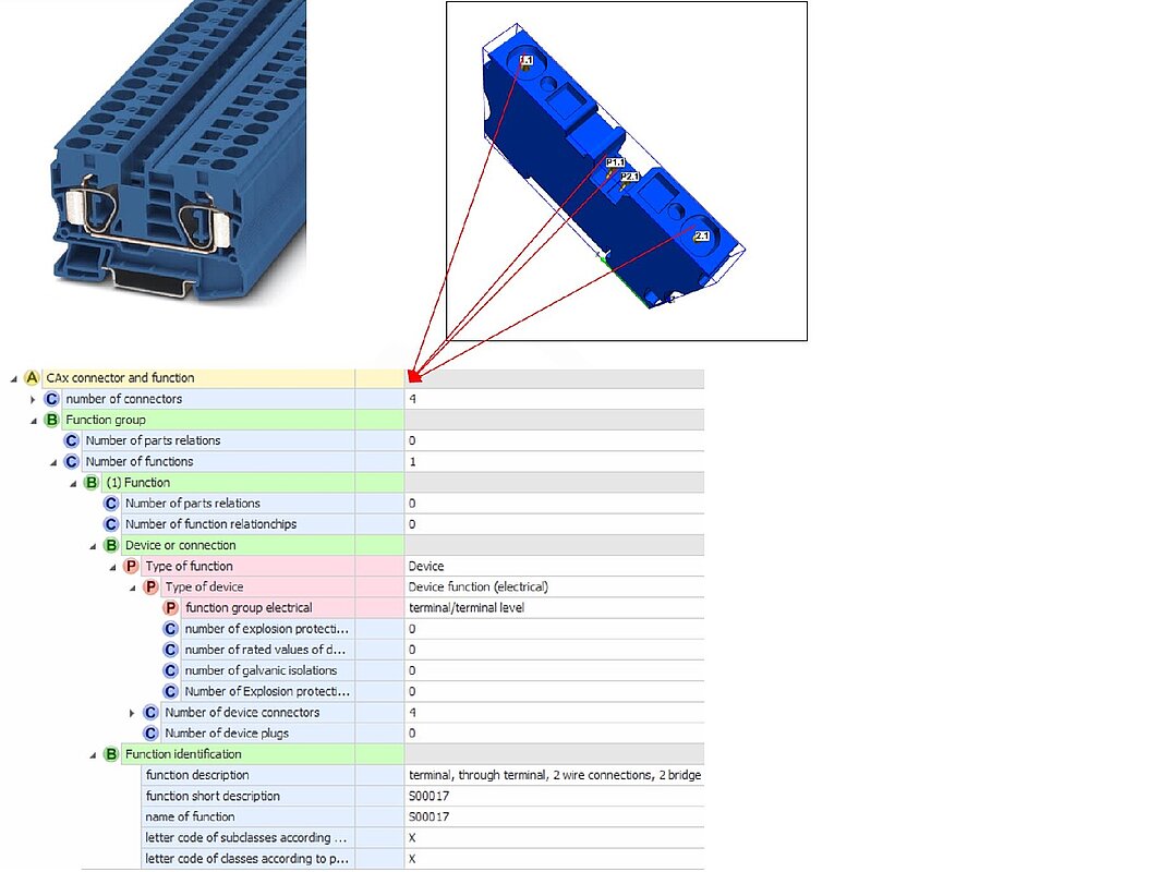 ECLASS ADVANCED enables the description of the functional structure of each product. Each product is broken down into its functions and these are described individually.