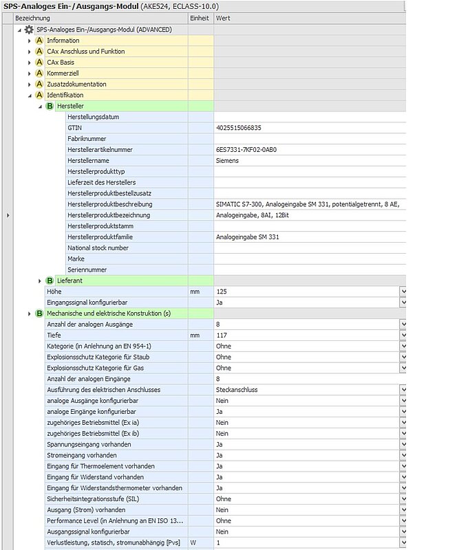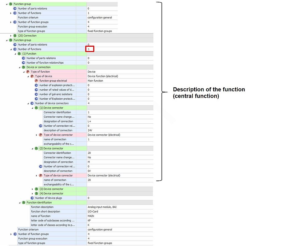 In the electrical function group, information is provided on the product properties for function-oriented engineering from the perspective of CAE planning for automation systems.
