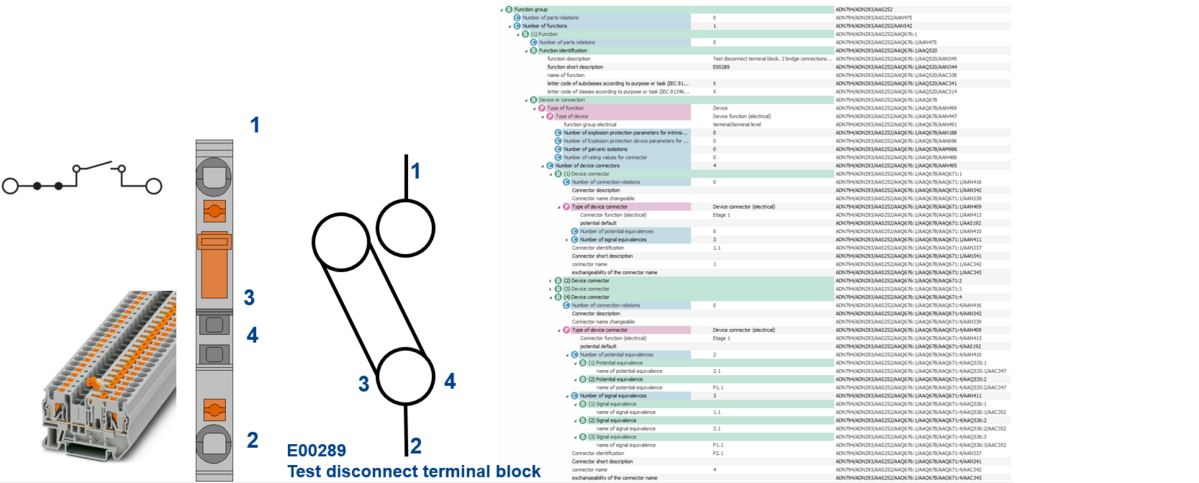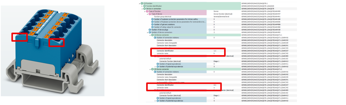 - The plug-in connection at the terminal must be described as a separate electrical connection in the ECLASS model.