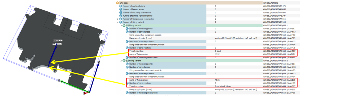 - The connector must have the same value in the mounting variants as at the terminal in the component holder.