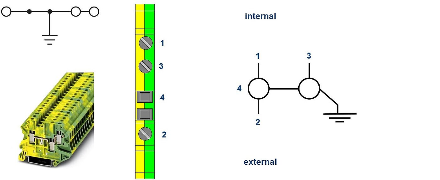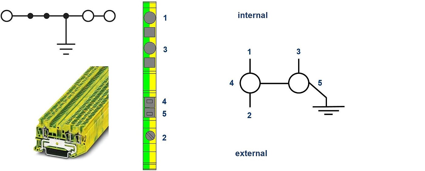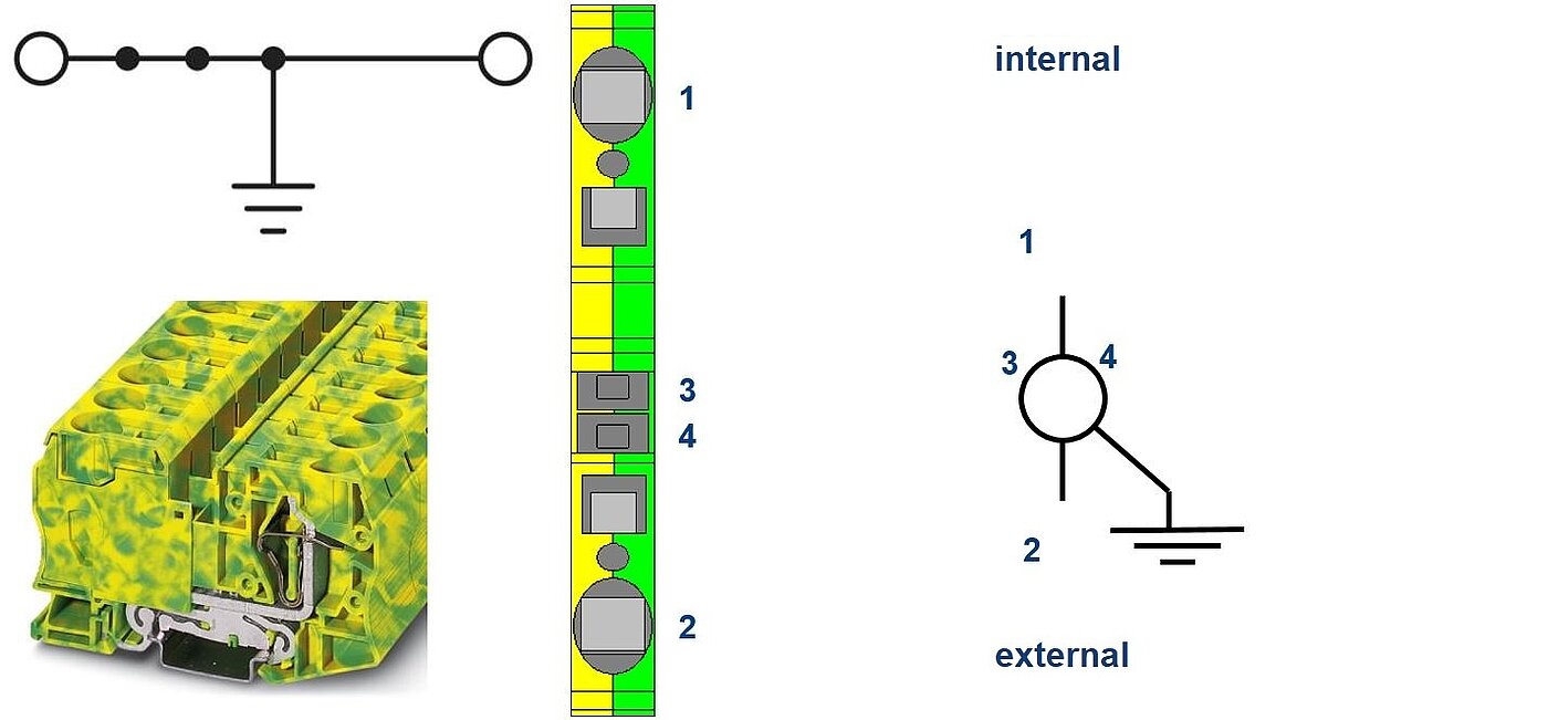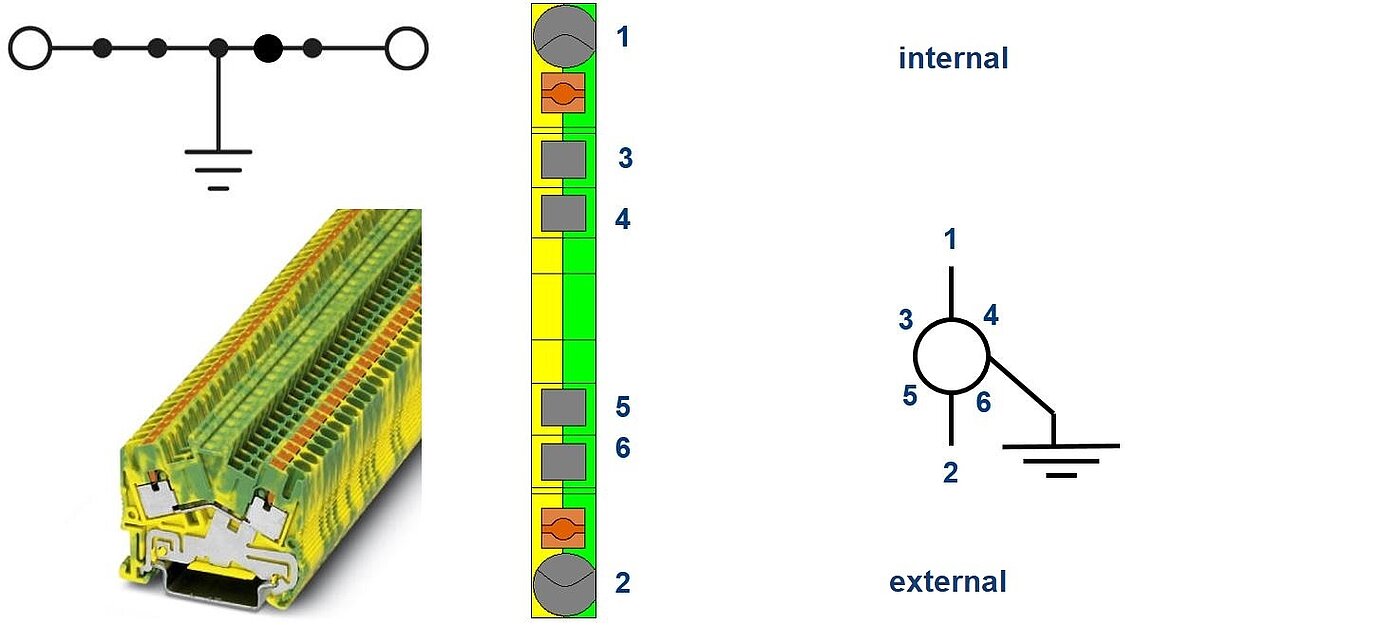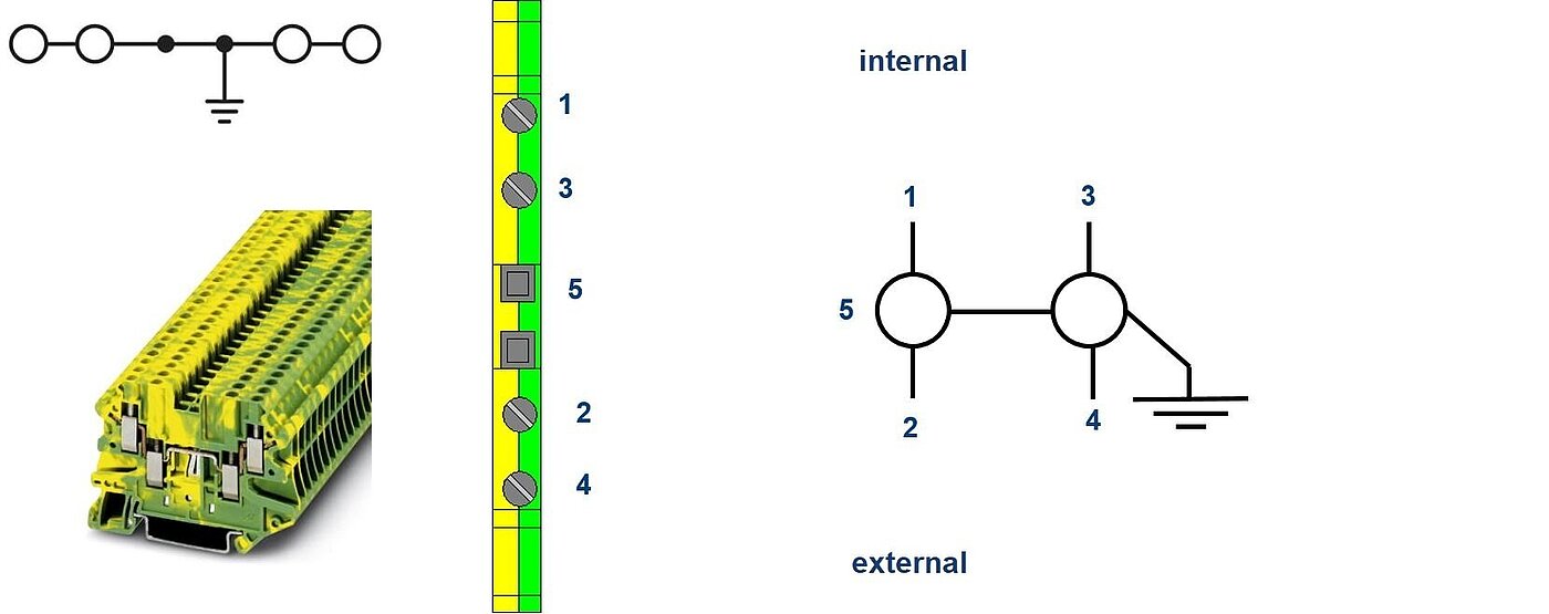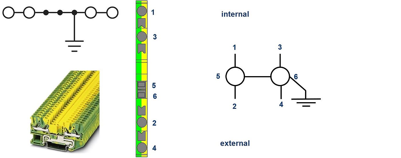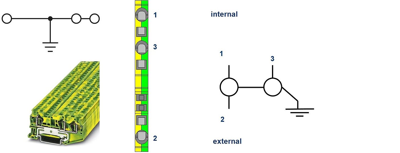 PE-Terminal, 3 wire connections, 2 bridges connection