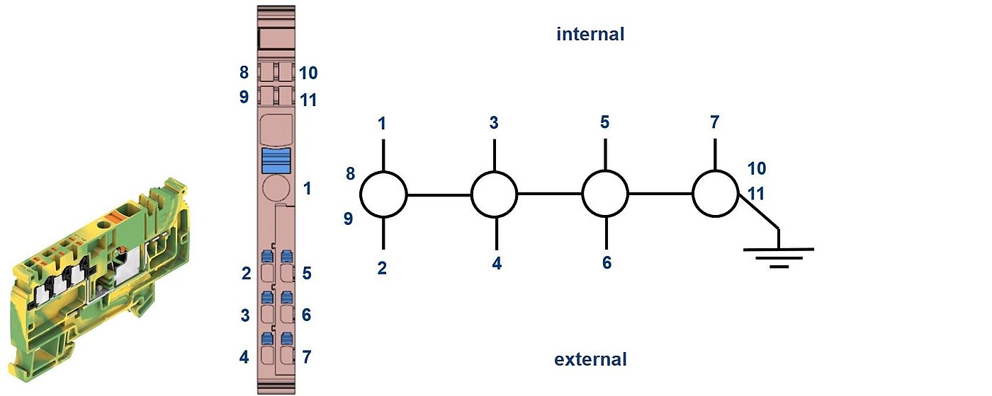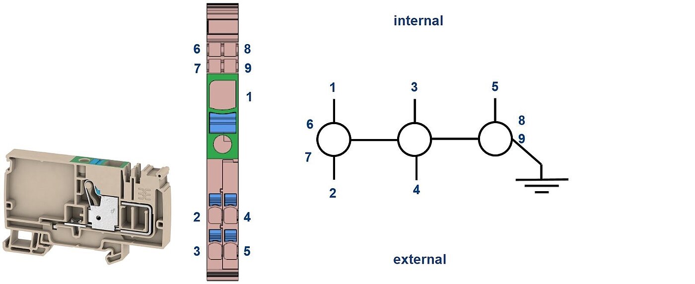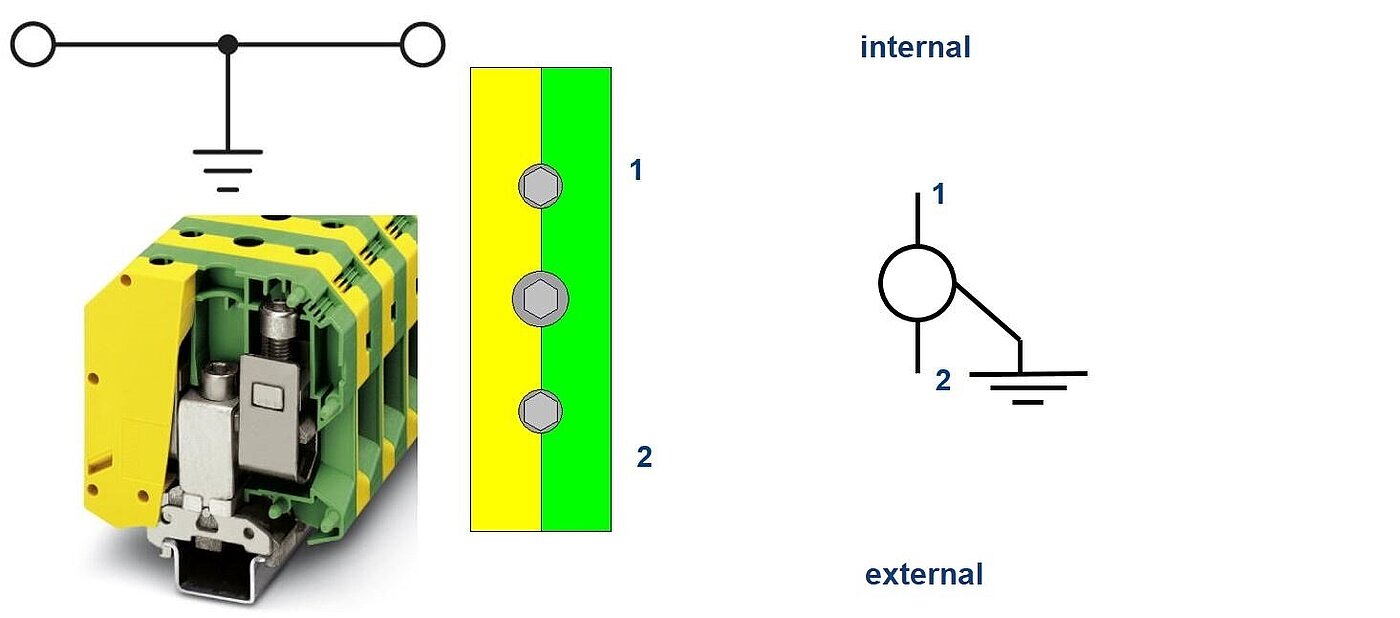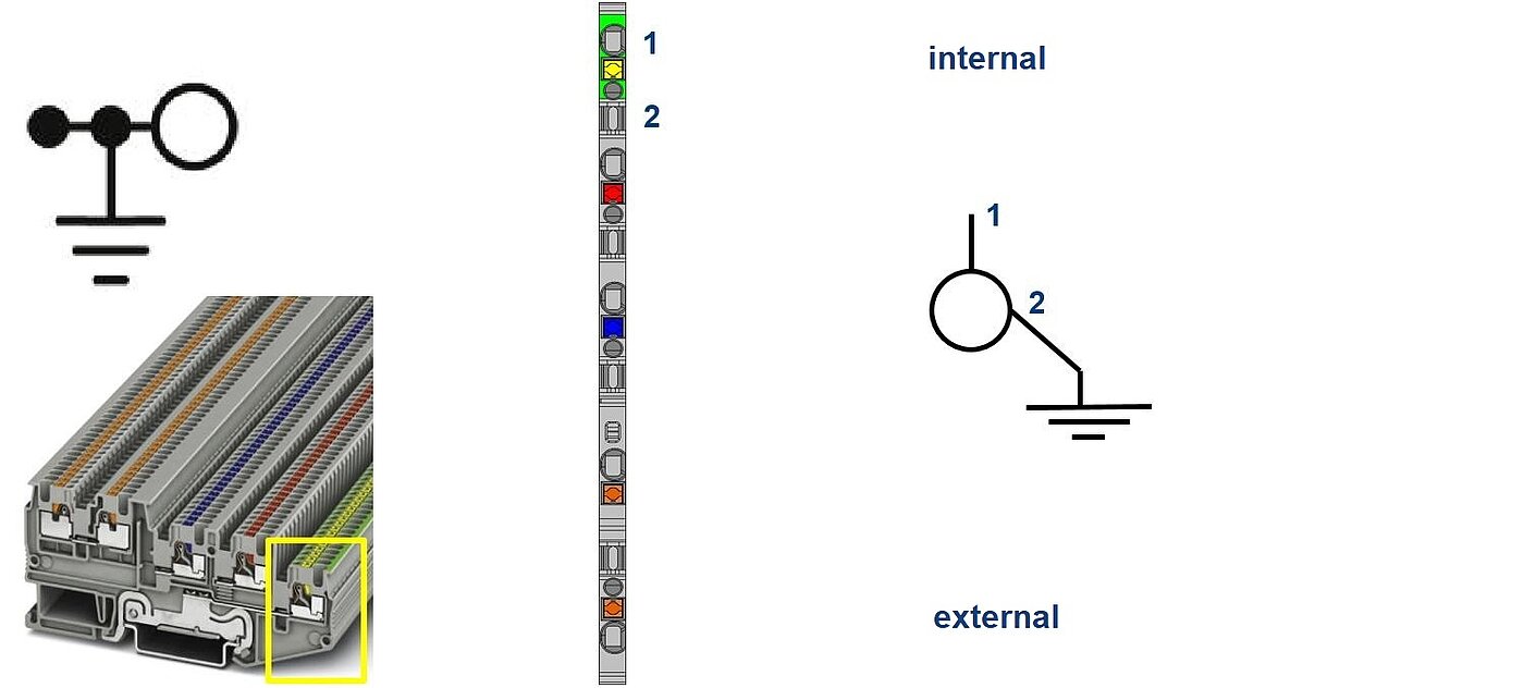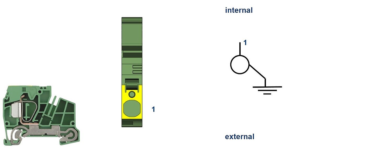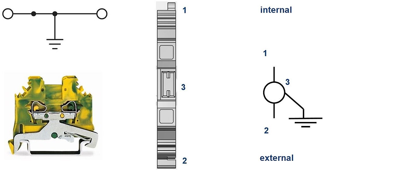 PE-Terminal, 3 wire connections, 2 bridges connection