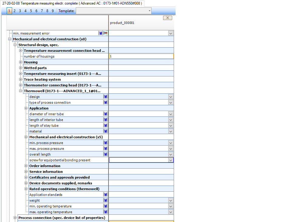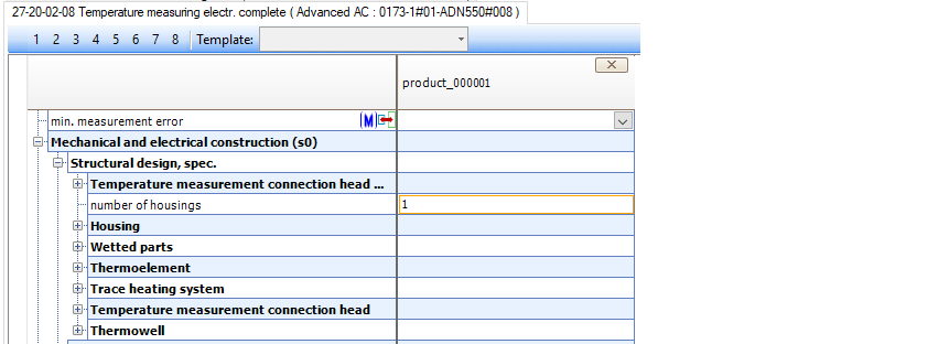The component Blocks shown in Figure 14 can be replaced by existing Application Classes. The data of the component is stored in the data set of the main product instance. The component Blocks describing the ‘Temperature measurement connection head’ and ‘Thermowell’ are substituted by the existing Application Classes as components. It is a homogeneous dataset and not a datalink like in concept of composition.