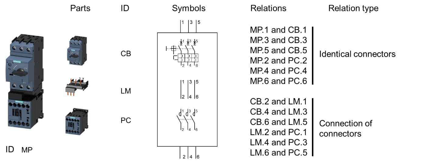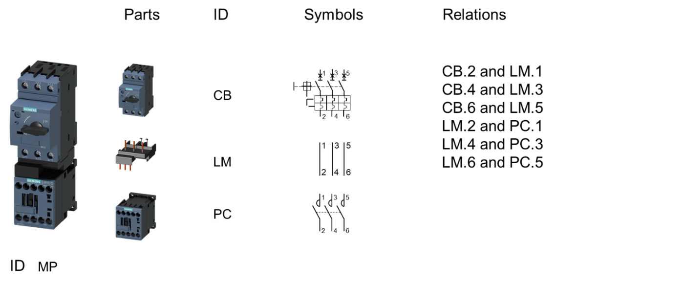 With the help of this composition modelling, a motor starter combination can be represented using both submodels.