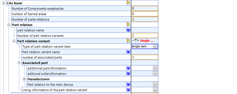 In Figure 12 some relations between the main composed product and its components are depicted. These relations stand for electrical connections between conductor terminals. Further types of relations are possible. For example, relations between component holders (component receptacles) and mounting variants (fixing variants) are needed.