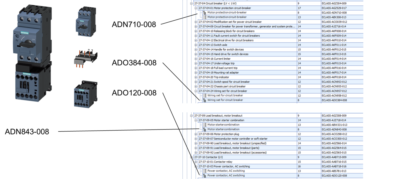 Having a closer look at many products: they are already compositions of subproducts. An example is a fuse less load feeder which is a combination starter (IEC 60947-4-1:2018, 3.4.7) including a motor protection switching device MPSD (manually operated circuit breaker for motor load), a power contactor and a dedicated wiring device. The composition and all its components are distributed and therefore have their own product data descriptions using different APPLICATION CLASS(ES).