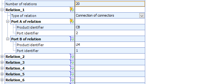 The Property ‘Type of relation’ is defined on the basis of a fixed Value list which contains different relation type abilities like ‘wiring of connectors’, ‘Connection of fixing variants’ and furthermore. This Property defines the type of connection between ports of the composed main product and component or between two components. Sometimes a port of the composed main product is identical to a port of a component. Therefore, Values like ‘Identical connectors’ (“Same conductor Terminal”) and ‘Identical mechanical fixing variants’ (“Same mechanical mounting”) are dedicated to the Value List of the Property ‘Type of relation’ (Figure 16).