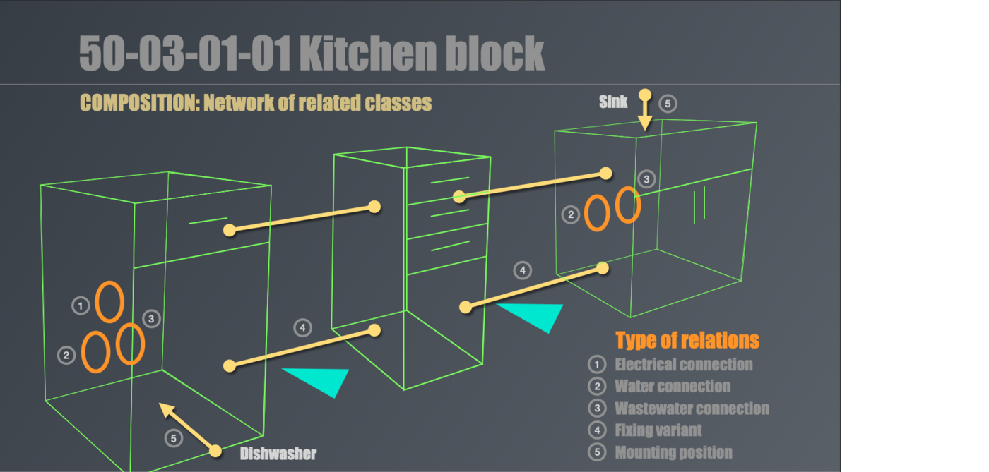 The kitchen block made off an arbitrary amount of corpus is an example for a composite device that can have endless variations, sizes and forms. This current concept of defining composite devices is capable to handle the necessary flexibility and to describe a customer order lot size one in an exact manner.