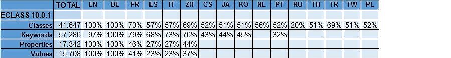 An example of the degree of translation is the following figure of ECLASS Release 10.0.1: