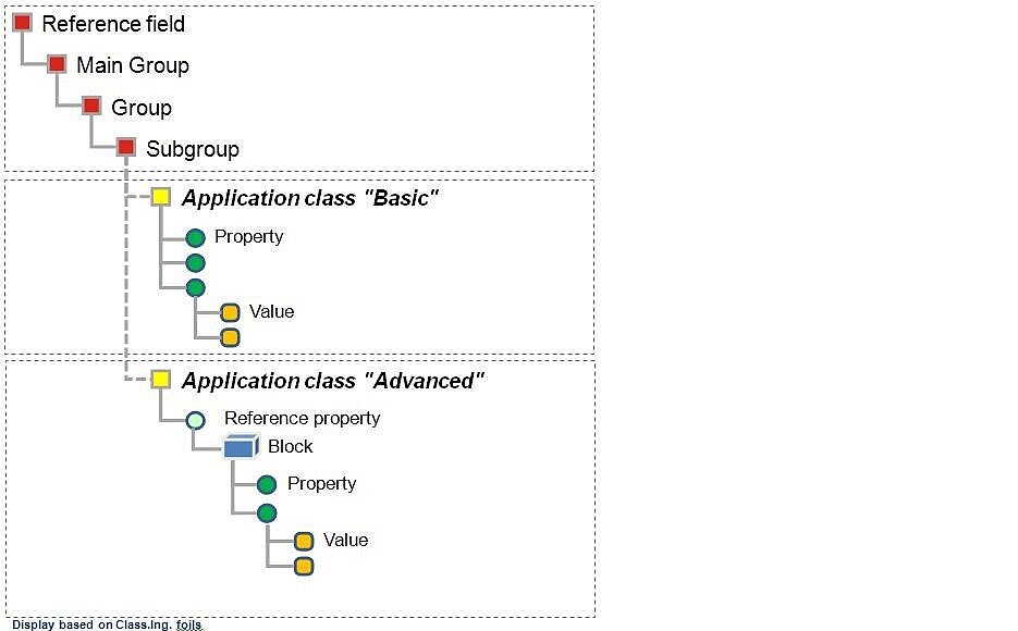 The 4-level class structure is associated with the new application class (AC). This, in turn, contains all relevant structural elements such as blocks and aspects. Integration of both the PROLIST standard and CAx elements results in additional important data model extensions. Using “Cardinality" multiplication elements as well as variant access of special blocks by means of “Polymorphism” results in significant simplification.