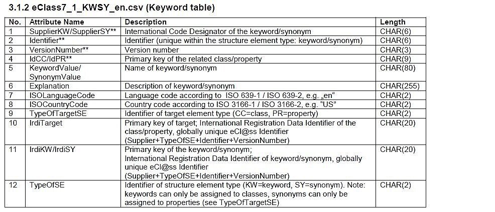 Synonyms aid the search for properties within the ECLASS class structure and have the same meaning as the preferred names of the properties. But they must not match the preferred name of the properties. Before the 7.0 release, synonyms of properties were managed as the property attribute "alias name". Since release 7.0 they are distinct structural elements and